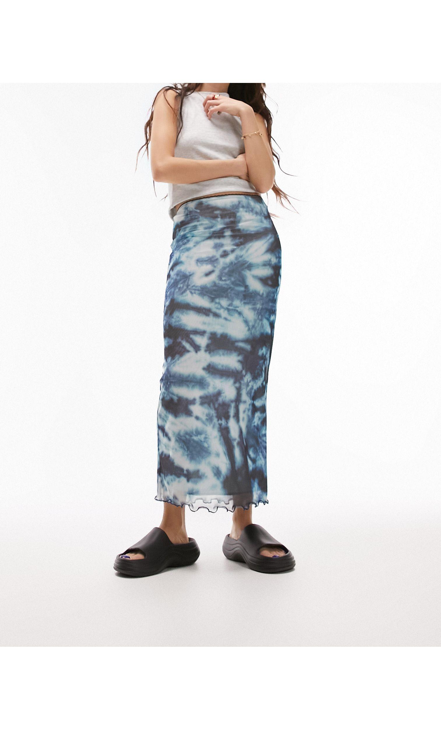 Topshop Blurred Animal Picot Trim Midi Mesh Skirt In Blue Lyst Uk